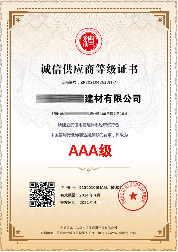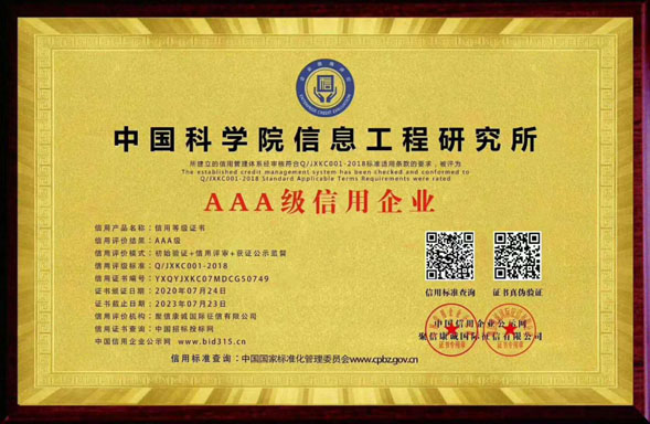 AAA企業信用評級網是從事企業認證咨詢、各行業榮譽證書辦理的網站,認證主要包含企業AAA信用等級證書、ISO體系認證、服務認證等認證產品。出證快、價格優。 企業AAA信用等級證書主要包含:AAA企業信用等級、AAA企業資信等級、AAA重合同守信用、AAA質量服務誠信企業、AAA誠信經營示范單位、誠信企業家、誠信經理人、AAA重質量守信用、AAA重服務守信用、AAA誠信供應商等。我們將一如既往繼續努力,能夠和您合作是我們的榮幸!AAA企業信用評級網本著“誠信、專業、優質、高效”的宗旨為廣大客戶提供全方位的認證咨詢服務,本公司愿與廣大的新老客戶真誠合作、攜手共進! |